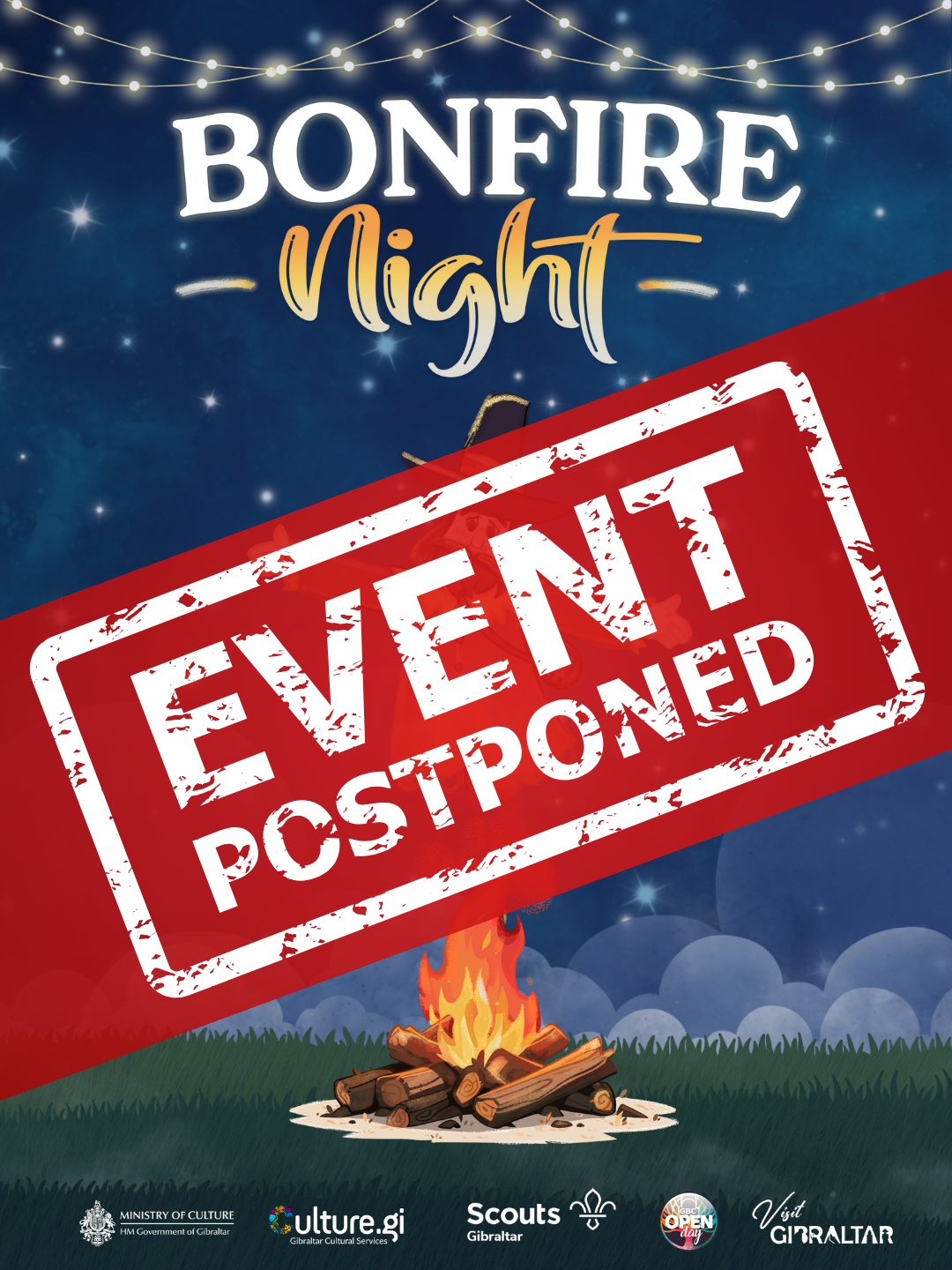 Gibraltar Cultural Services, on behalf of the Ministry of Culture and in collaboration with The Gibraltar Scouts Association, have decided to postpone the Bonfire Night event due to weather concerns.