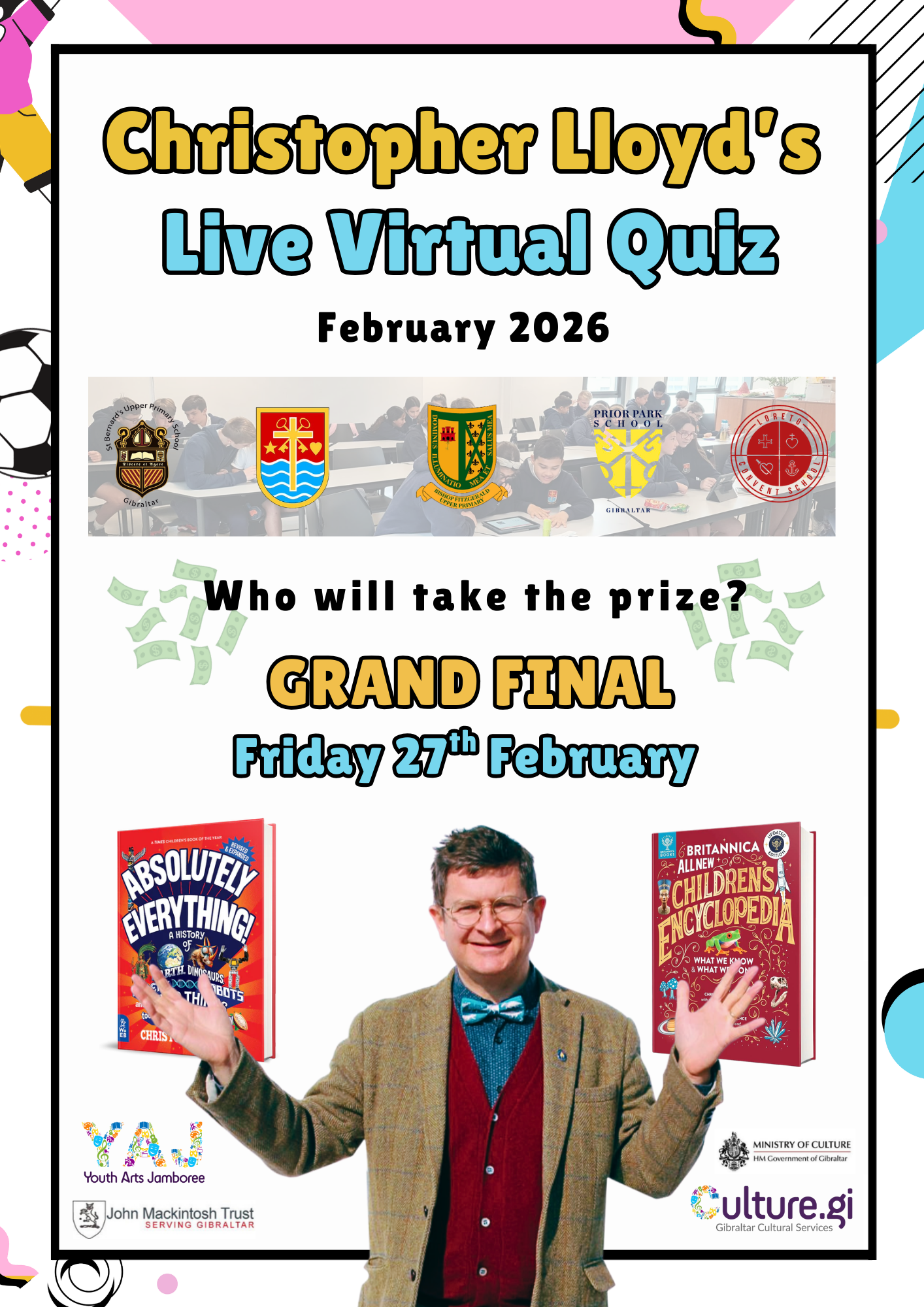 Author and historian Christopher Lloyd will be hosting an exciting live virtual quiz for schools as part of the 2026 Youth Arts Jamboree. The event, by Gibraltar Cultural Services (GCS), on behalf of the Ministry of Culture, and sponsored by the John Mackintosh Educational Trust, will feature during the week of the 23rd to 27th February 2026.
