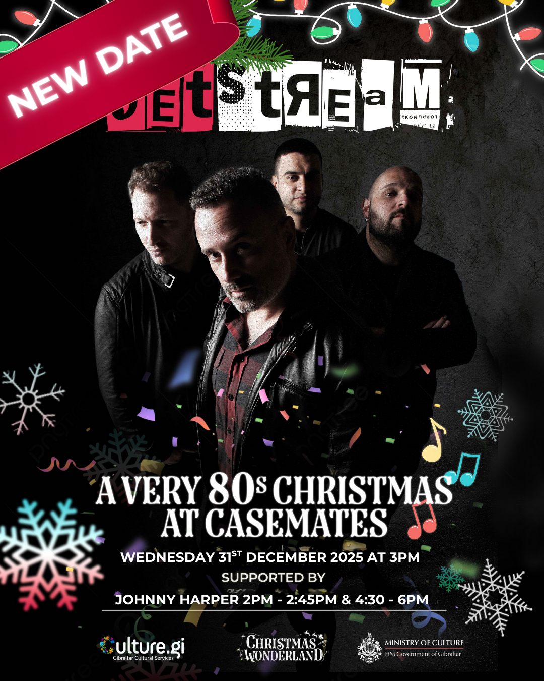 Gibraltar Cultural Services (GCS), on behalf of the Ministry of Culture, wish to advise the postponement of A Very 80’s Christmas with Jetstream this Saturday, due to the forecast of heavy rain.