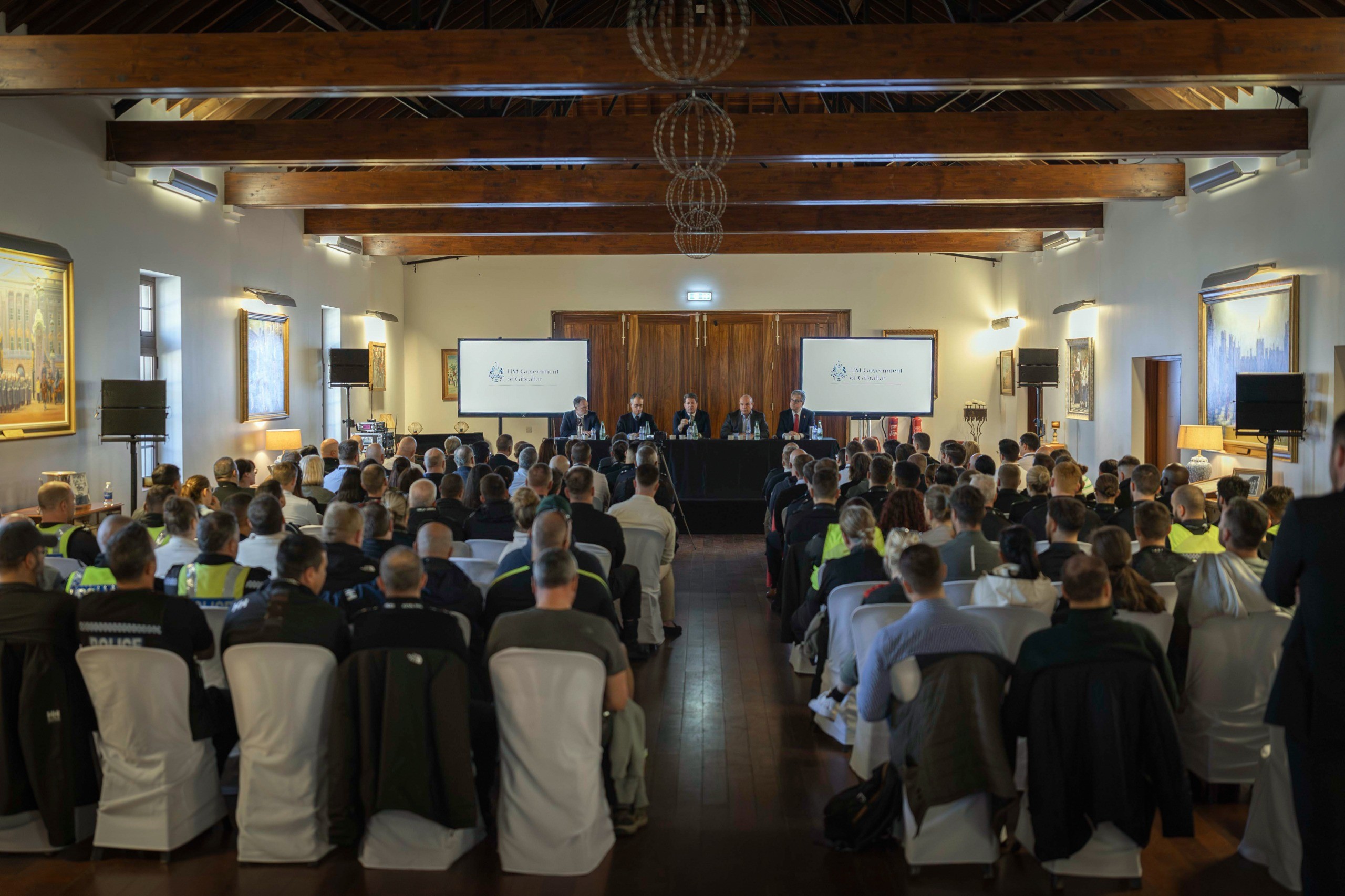 The briefing was delivered by the Chief Minister, the Hon Fabian Picardo KC MP, and attended by the Deputy Chief Minister, Dr the Hon Joseph Garcia CMG MP; the Minister for Justice, Trade and Industry, the Hon Nigel Feetham KC MP; the Attorney General, Michael Llamas CMG KC; and the Commissioner of Police, Owain Richards.