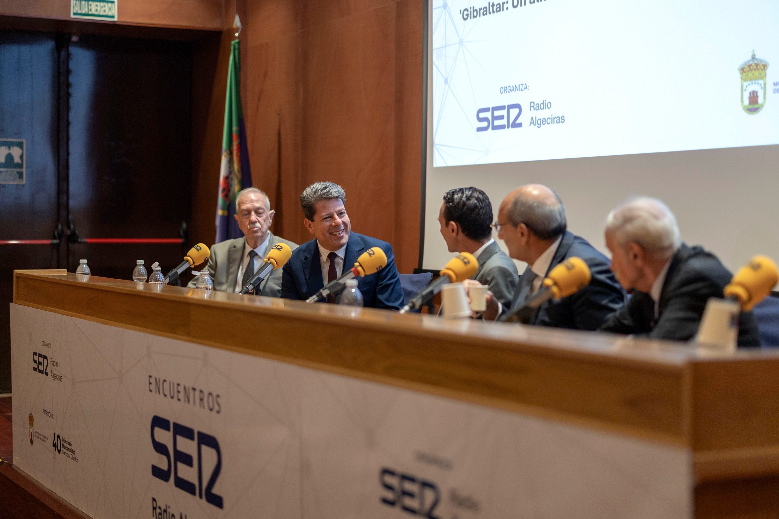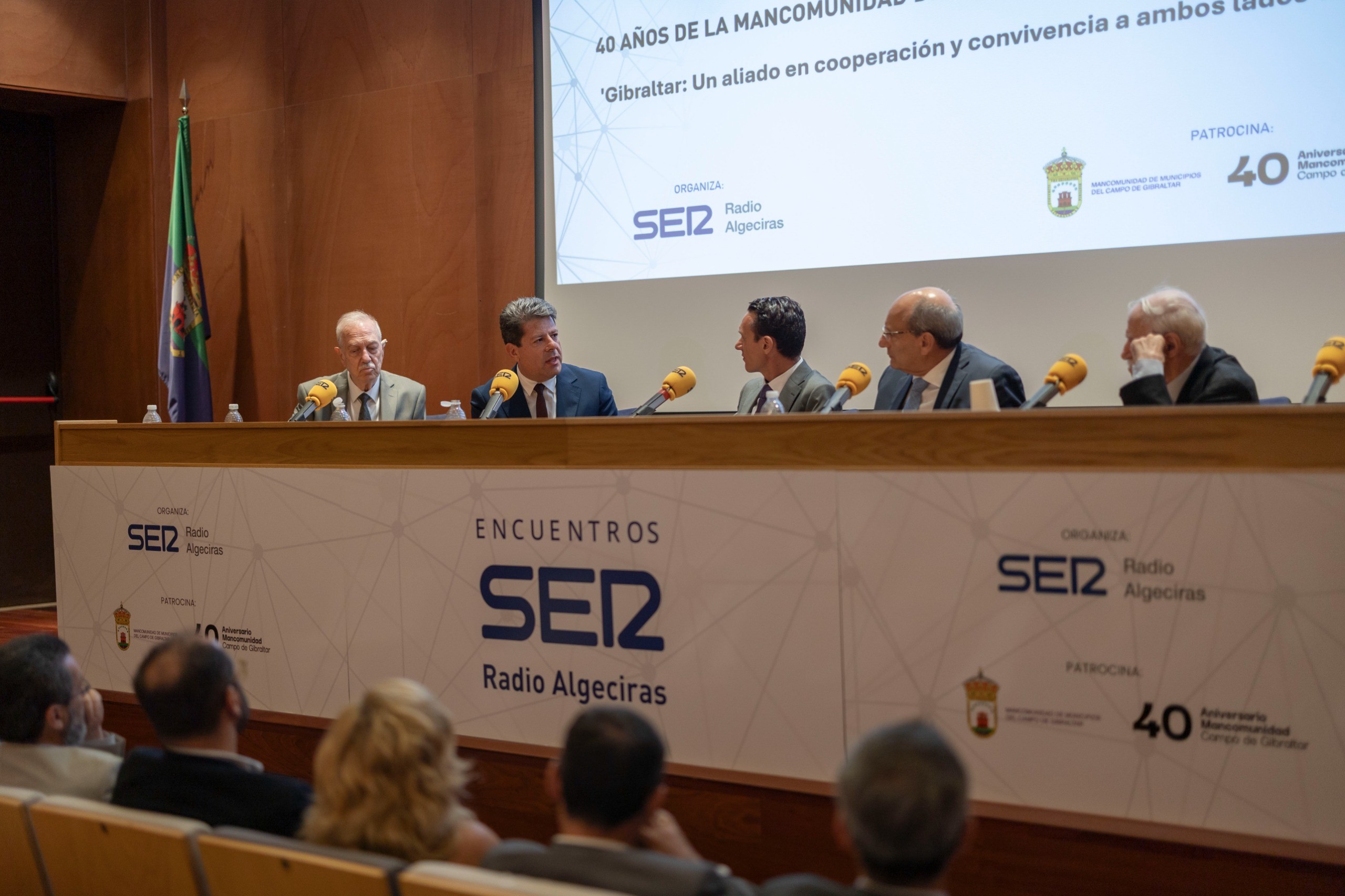 Yesterday, in a landmark event organised by Cadena SER Campo de Gibraltar, the 40th anniversary of the Mancomunidad de Municipios del Campo de Gibraltar was celebrated in Guadacorte, San Roque. The gathering was distinguished by the historic presence of the current Chief Minister together with the three surviving former Chief Ministers of Gibraltar. This was the first time that all living Chief Ministers assembled outside of Gibraltar.