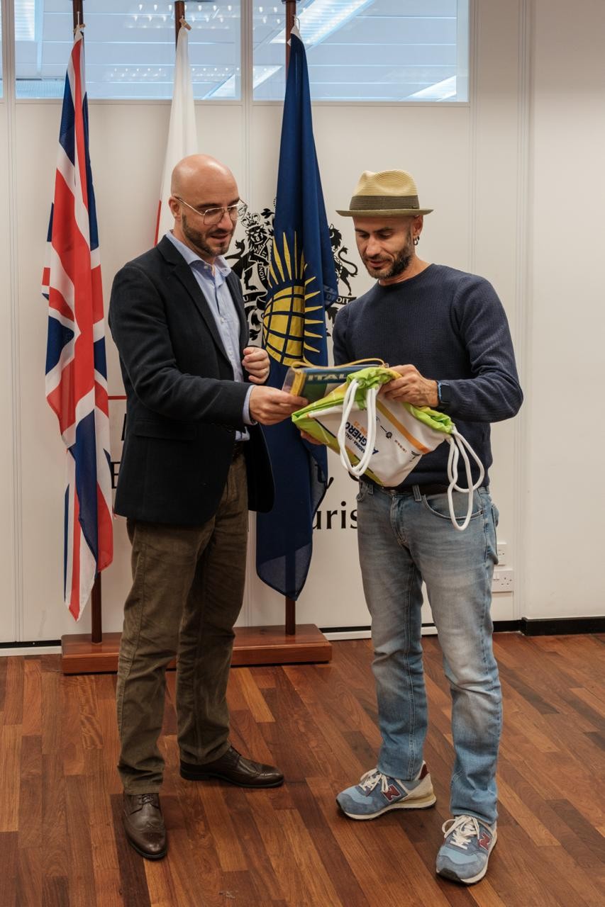 The Minister for Equality, Employment, Culture and Tourism, the Hon Christian Santos, met with representatives of the Italian-led “Paralympic Corridors” project on Saturday as they passed through Gibraltar on their overland journey from Sardinia to Senegal.