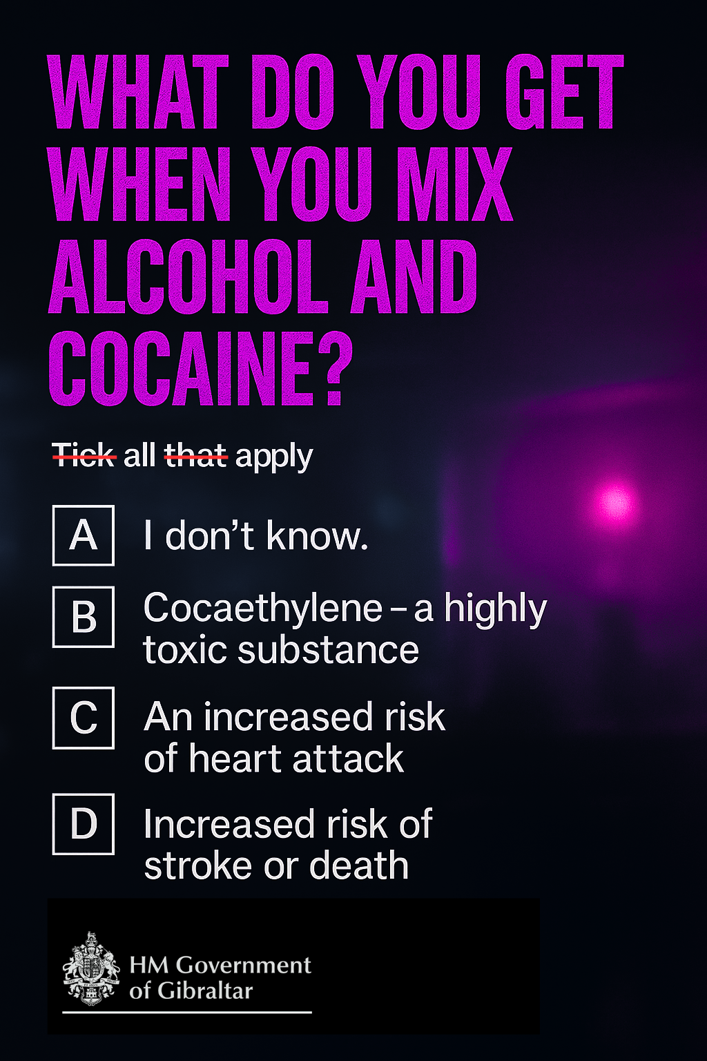 HMGoG has today launched a public awareness campaign highlighting the dangers of cocaine use. This campaign is a multi-agency one and stems from the work carried out by the Drug Advisory Council, chaired by the Hon Minister Santos, GMD MP.