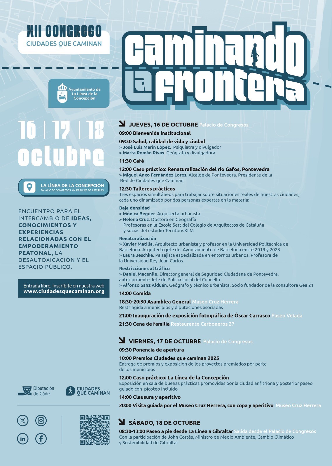 Minister Cortes will also attend the Ciudades que Caminan sessions in La Línea at 9:00am and 9:00pm on Thursday 16th October as part of the wider programme of events.