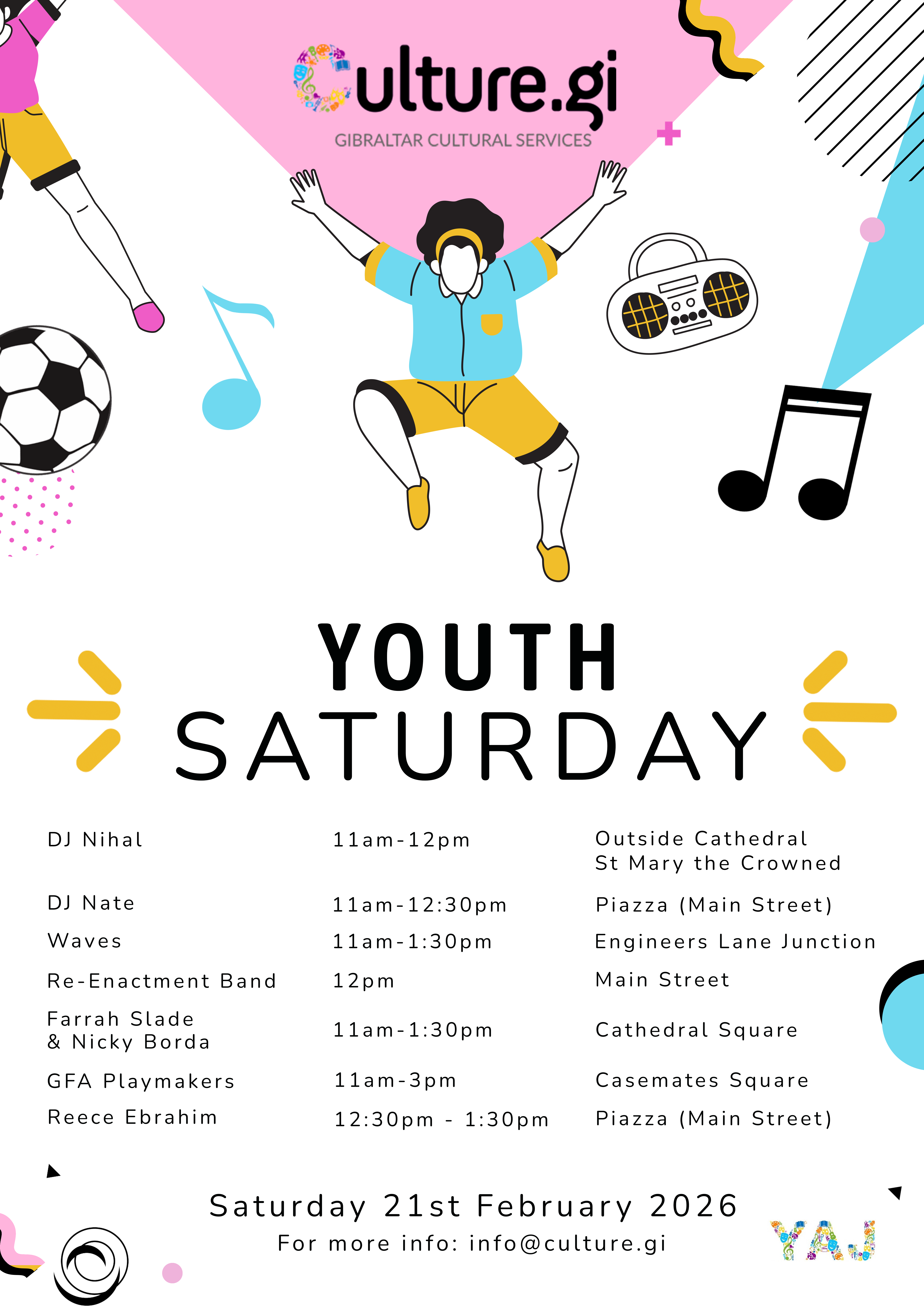 Gibraltar Cultural Services (GCS), on behalf of the Ministry of Culture, is delighted to announce Youth Saturday Entertainment as part of the Youth Arts Jamboree events taking place on Saturday 21st February 2026.